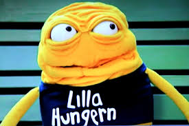 ...som är rädd för "Lilla hungern" i Danio-reklamen? Om den jäveln står på diskbänken är man inte så tuff längre. Lyssna bara på skrattet. Djävulsskrattet! En hel falukorvsring av ondska.